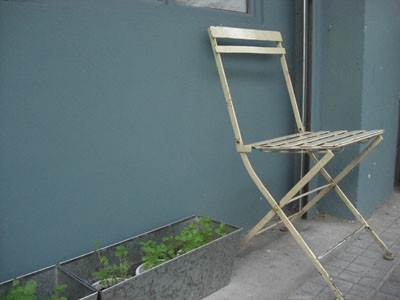 店外不起眼的角落里的椅子,還有綠草。和諧的搭配。